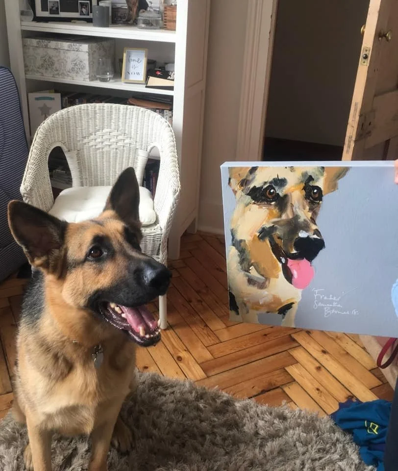 Your painting is ready to leave my studio. The second payment is paid and your dog is on his or her way home.
