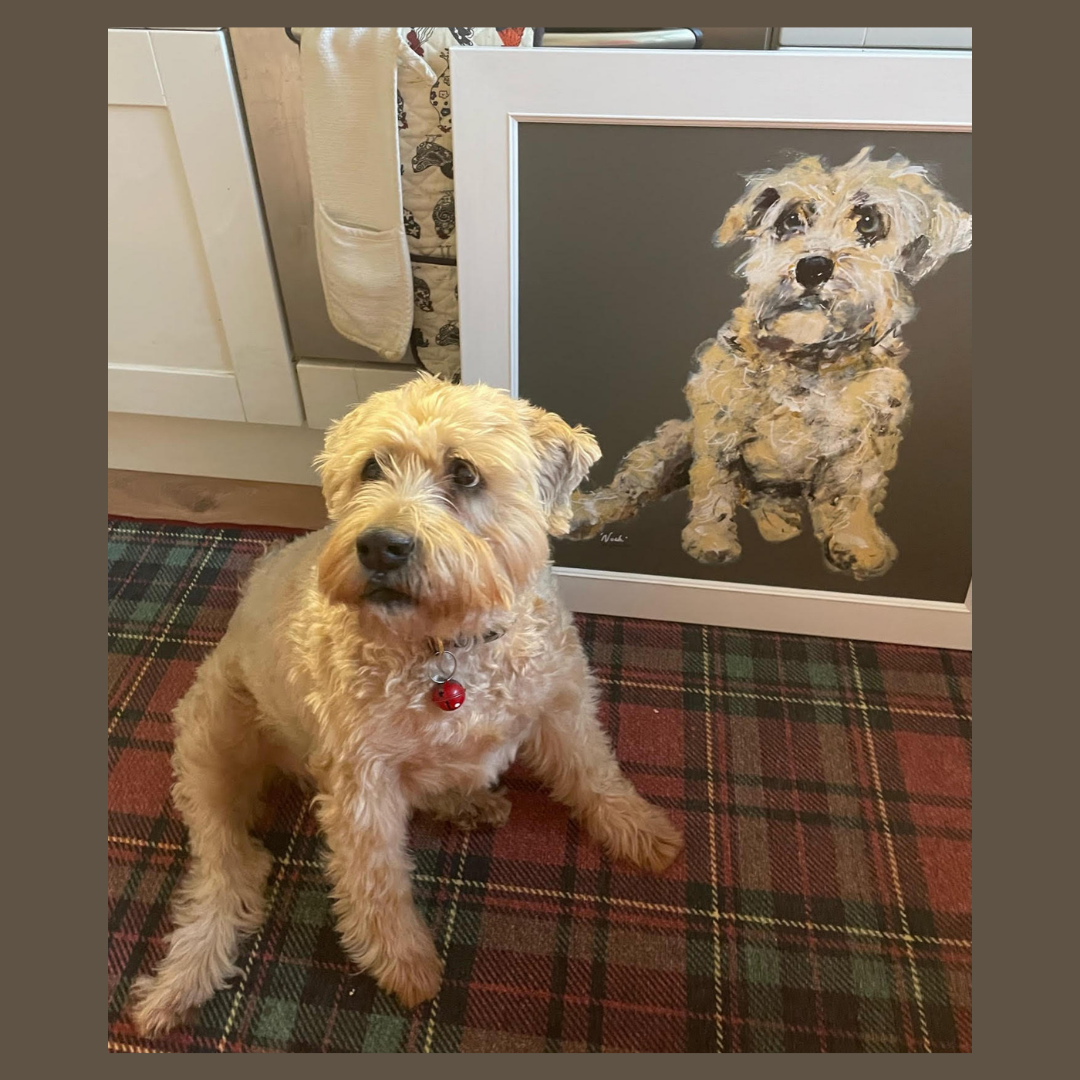Between us we work out a timeline for your painting and chat suggested sizes and painting materials according to your dog. The process takes around 4 weeks. A 50% deposit is taken here to secure your spot.